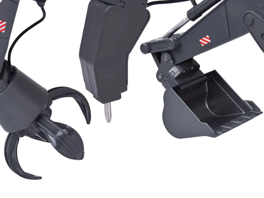 U paketu su tri izmjenjiva nastavka – žlica, grabilica i razbijački čekić – koji lako prilagođavaju bager različitim zadacima. LED osvjetljenje i zvučni efekti mogu se jednostavno uključiti ili isključiti. Metalna žlica, plastična kabina i izdržljiva izrada jamče dugotrajnu zabavu.