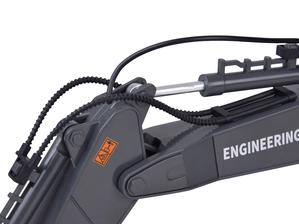 Realistični gusjeničarski bager na daljinsko upravljanje donosi djeci autentičan doživljaj gradilišta. Rotirajuća nadogradnja od 360°, zglobni krak i funkcionalni alati omogućuju kopanje, utovar i hvatanje. Zahvaljujući gumenim gusjenicama pouzdano se kreće po raznim površinama, a upravljač 2,4 GHz osigurava glatko i neometano upravljanje.