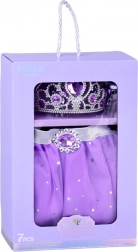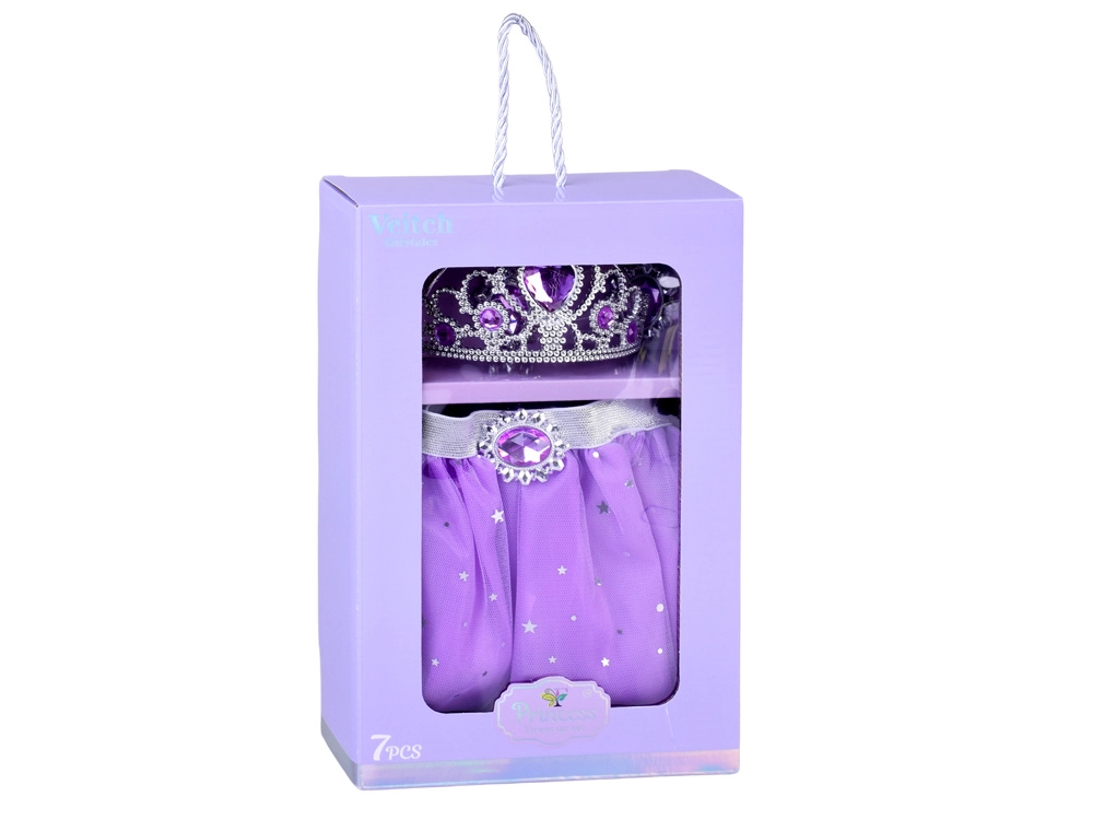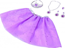 Čarobni set za male princeze donosi ljubičastu tutu suknju sa zvjezdicama i bogate dodatke – krunu, ogrlicu, prsten i naušnice. Zahvaljujući elastičnom struku i laganom tilu suknja je udobna za cjelodnevnu igru. Nakit s ljubičastim kamenčićima razsvjetljava svaki kostim i potiče kreativnu, princezinu igru.