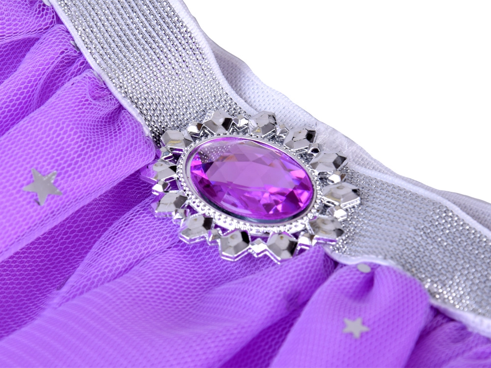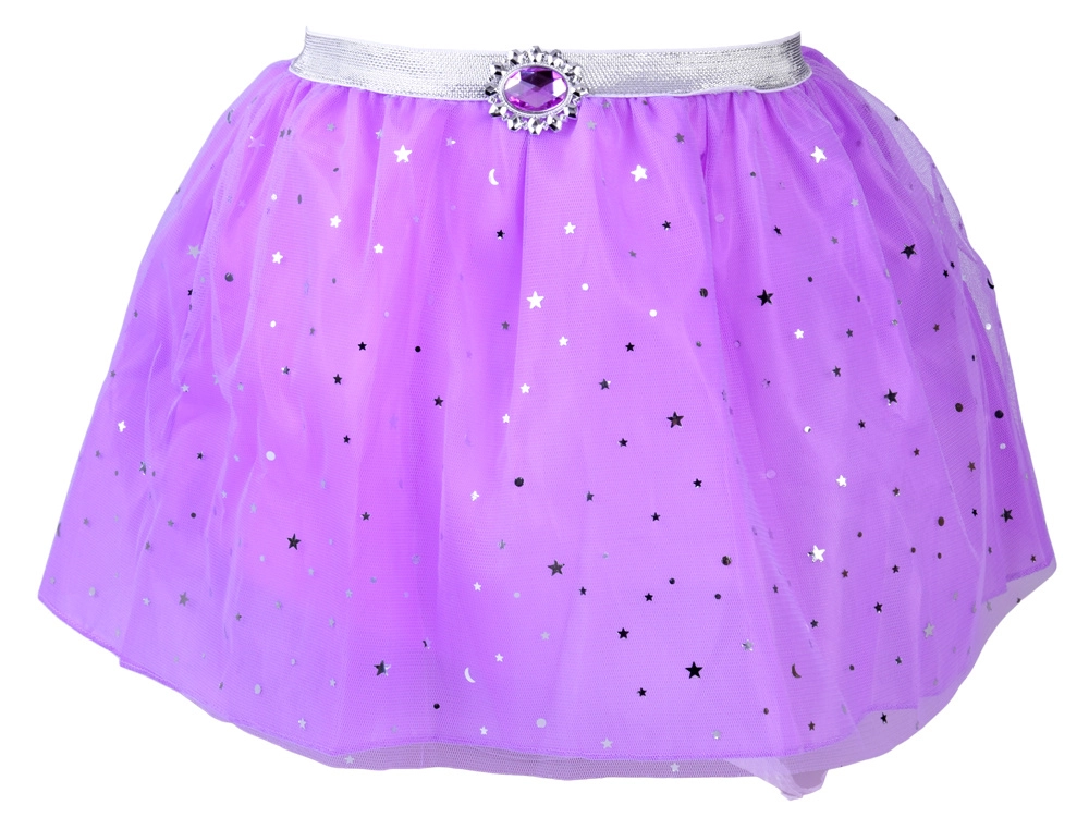 Pretvorite svako presvlačenje u bajkoviti bal. Ljubičasta tutu suknja s blistavim zvijezdama i mjesecima očarat će na prvi pogled, dok srebrna kruna, ogrlica, prsten i viseće naušnice s ljubičastim kamenčićima upotpunjuju kraljevski izgled. Elastični struk osigurava udobnost i lako oblačenje.