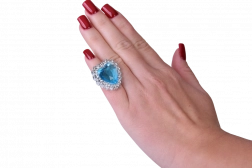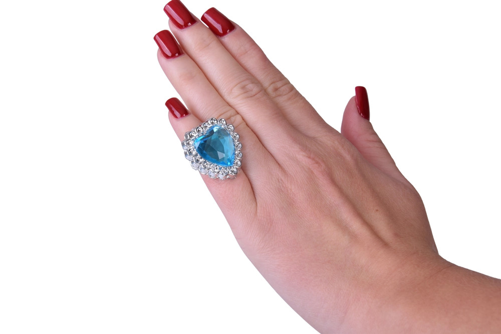 Kopčaste naušnice i upadljiv prsten sa srcolikim plavim kamenčićima lijepo zaokružuju cijeli set te se lako stavljaju i skidaju.