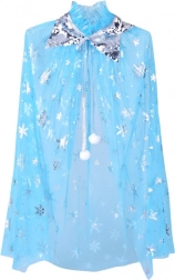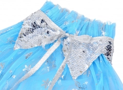 Elegantna plaštica od laganog, prozirnog tila ukrašena je srebrnim snježnim pahuljicama i ovratnikom sa šljokicama. Vezanje na mekane bijele pompone osigurava udobno i sigurno nošenje. Hladni plavi tonovi sa srebrnim sjajem stvaraju očaravajući zimski izgled koji djeca vole.