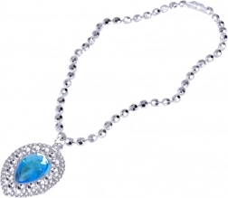Srebrna tijara s plavim kamenjem i usklađena ogrlica s privjeskom u obliku kapljice daju svakom kostimu bajkoviti šarm.
