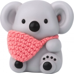 Slatka antistresna koala od mekog silikona s pletenim šalom izvrstan je dodatak za djecu i odrasle. Ublažava stres, ugodno se stišće i zahvaljujući glatkoj površini odlično leži u ruci. Različite boje šala daju igrački poseban stil i zabavu pri senzornom i motoričkom razvoju.