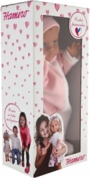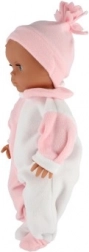 Ova realistična lutka beba sjajan je pratitelj za svakodnevnu igru. Zahvaljujući čvrstom tijelu dobro drži oblik, lako se odijeva i izdržljiva je i pri čestoj upotrebi. Stilski bijelo‑ružičasti kombinezon s lijepom ružičastom kapicom naglašava njezin nježan izgled.