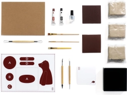 Set Atelier za modeliranje glinom osmišljen je da vas glatko provede kroz cijeli proces – od prvog miješenja do posljednjeg poteza kistom. U pakiranju se nalazi nekoliko paketića fine modelirne gline, set drvenih petlji i rezbarih alata, kistovi, boje/ljepila, lak za završnu površinu te tiskane šablone s obrisima medvjedića. Zahvaljujući njima lako postižete čiste oblike i lijepu teksturu krzna.
