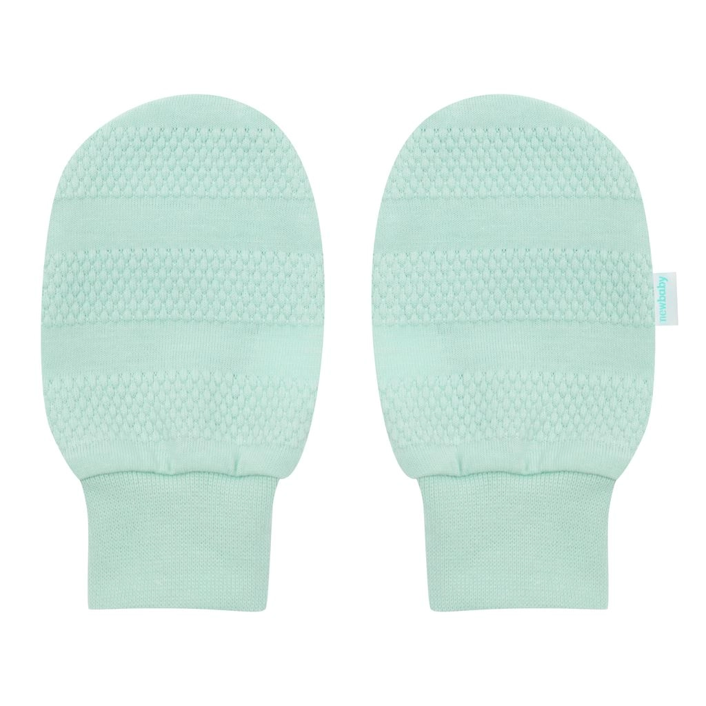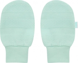 Kapica sa širim rubom dobro stoji, rukavice sprječavaju grebanje, a papučice se lijepo drže na nožici – sve usklađeno u mint boji.