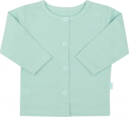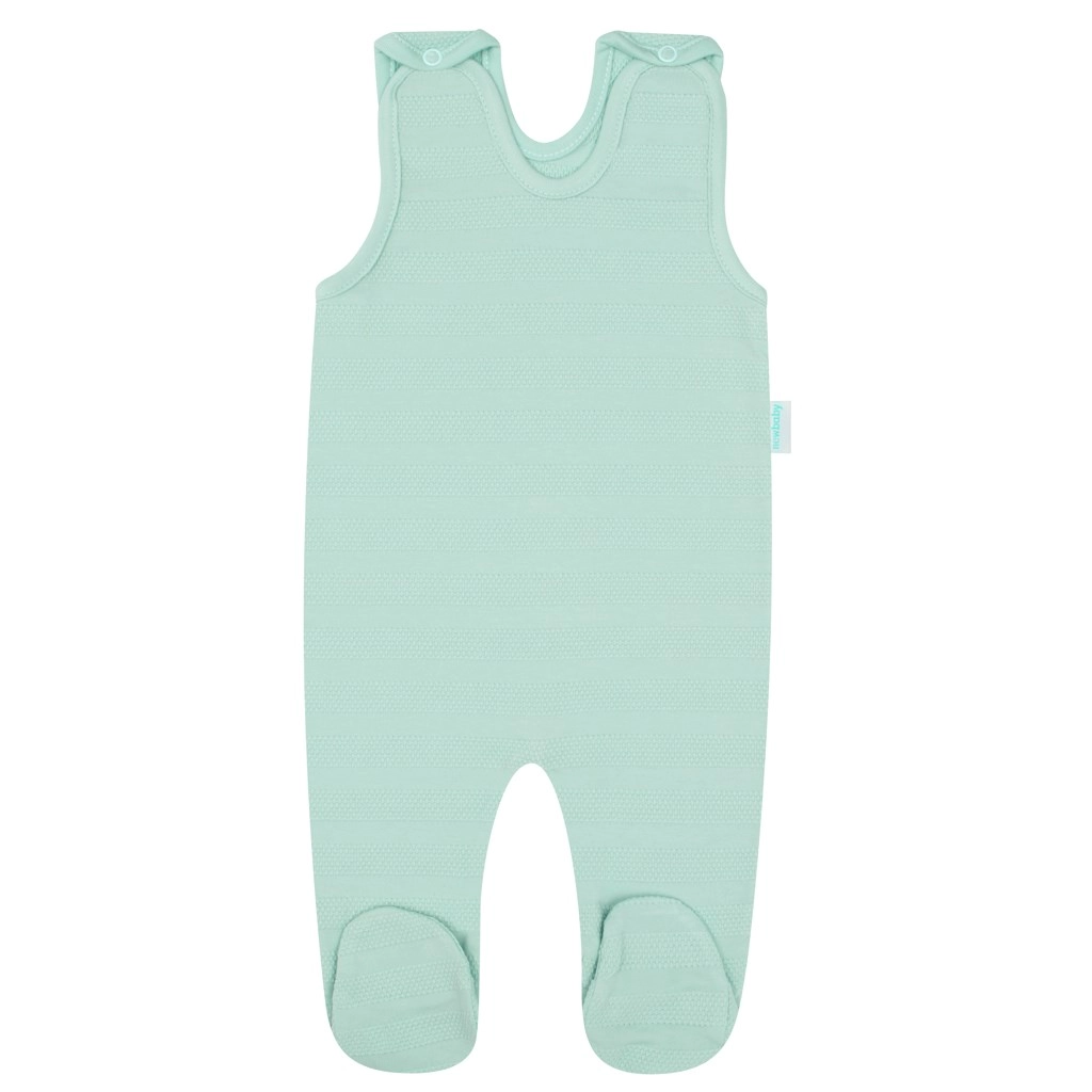 Set uključuje: potpuno raskopčivi bodi s dugim rukavom, benkice s prekrivenim stopalima, jaknicu na drukere, kapicu sa širim rubom, rukavice protiv grebanja i papučice sa steznom manšetom. Univerzalna mint nijansa i fina struktura materijala daju setu moderan, nježan izgled – izvrsno kao praktičan poklon.