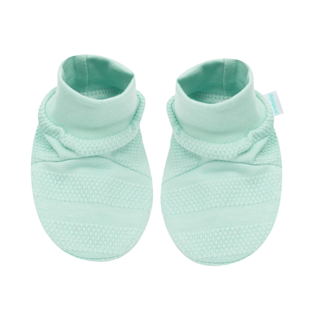 Ovaj mint novorođenački set dizajniran je s naglaskom na udobnost, lako odijevanje i sigurnost bebe. Zahvaljujući mekom i prozračnom sastavu od 100% pamuka prikladan je već od prvih dana života. Svaki komad je promišljen do detalja – od bočnog kopčanja na bodiju do širih rubova koji nježno drže, a ne stežu.