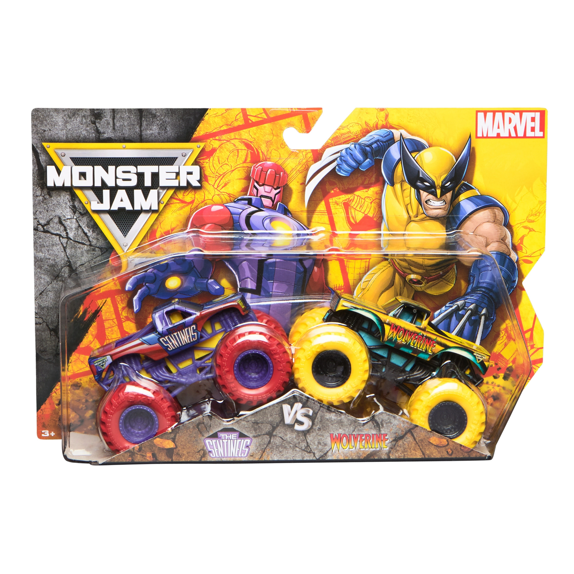 Uđite u svijet u kojem se MARVEL junaci susreću s kultnim vozilima MONSTER JAM. Dvostruki paket The Sentinels vs. Wolverine u mjerilu 1:64 donosi metalne konstrukcije, autentične BKT gume i detaljna karoserije inspirirane MARVEL-om za akcijske skokove, udarce i kolekcionarsko zadovoljstvo.