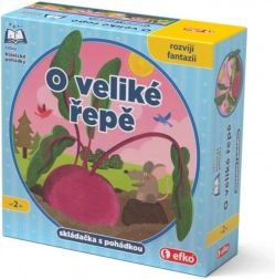 Dječji set O velikoj repi spaja jednostavne puzzle i poznatu bajku u jednom. Djeca će složiti sliku od 9 čvrstih dijelova i istovremeno pročitati priču u priloženoj knjižici. Igra potiče finu motoriku, maštu, logičko razmišljanje i strpljenje. Sadrži tekst na češkom i slovačkom i prikladna je od 2 godine.