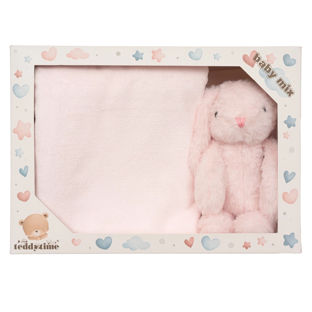 Poklon set BABY MIX spaja draž i praktičnost u jednom pakiranju. Plišani zeko izrađen je od mekanih i sigurnih materijala koji potiču taktilne osjete i osjećaj sigurnosti kod djece. Ogrtač bez kapuljače dimenzija 100 × 130 cm osigurat će toplinu i udobnost nakon kupanja i tijekom večernjeg odmora. Cijeli set smješten je u stilskom kartonskom pakiranju, stoga je odmah spreman za darivanje.