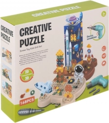 Otkrijte kreativni svijet gradnje s dječjim 3D setom na temu svemira! Set nudi 161 dijel, praktičan električni odvijač s izmjenjivim bitovima i simpatičnu kutiju u obliku medvjedića koja ujedno služi kao perforirana montažna ploča. Djeca vježbaju finu motoriku, logičko razmišljanje i stvaraju vlastite rakete, planete i vozila.