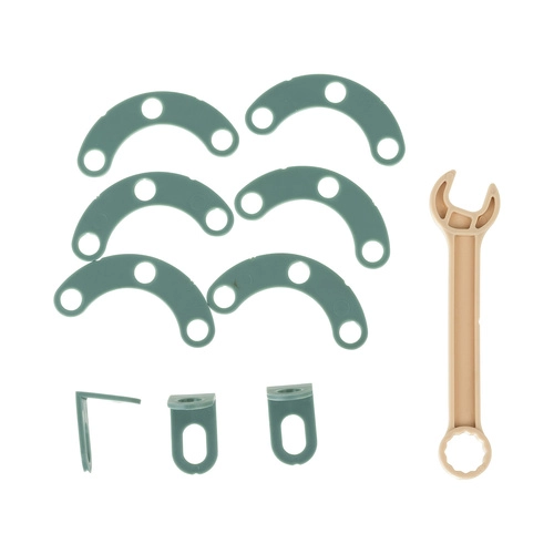 - Plastični vijci i matice, šareni konstrukcijski dijelovi, kartice za gradnju, remen za nošenje