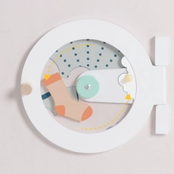 Ugrađena “perilica” s okruglim prozorčićem i upravljačkim elementima proširuje teme igre – od pranja do razvrstavanja rublja i brige o kućanstvu.