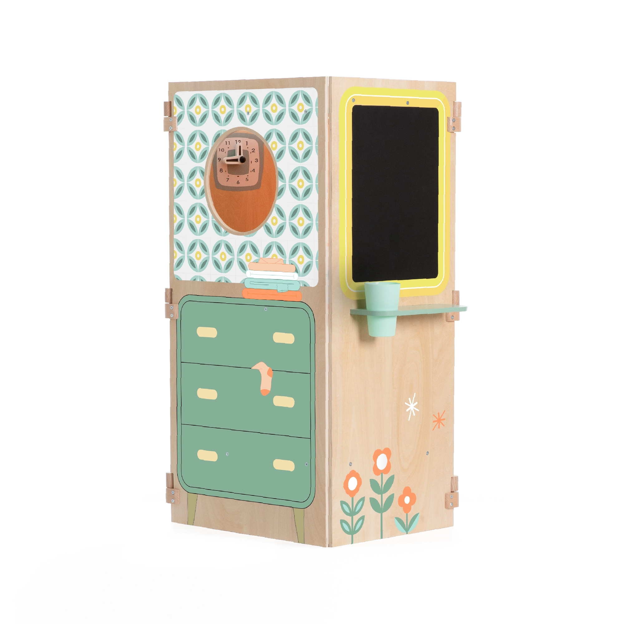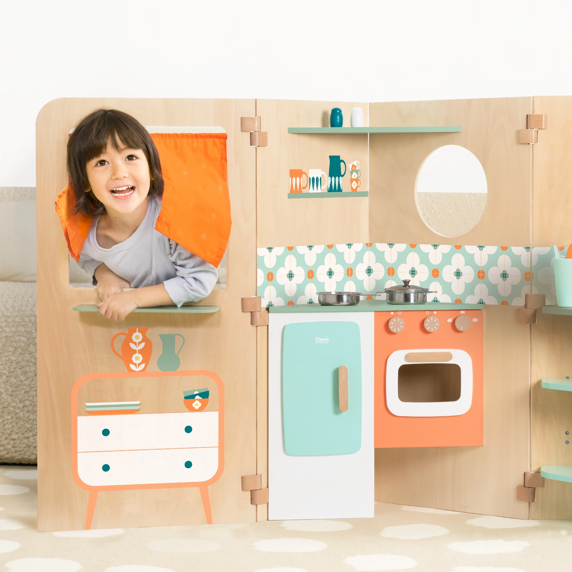 Otkrijte sklopivu multifunkcionalnu kućicu CLASSIC WORLD koja spaja kuhinju, praonicu, ploču za pisanje i prozorčić za kazališnu igru u jednom kompaktnom setu. Zahvaljujući pametnom otvaranju i sklapanju ne zauzima prostor, potiče kreativnu igru, igru uloga i razvoj motorike djece od 3 godine.
