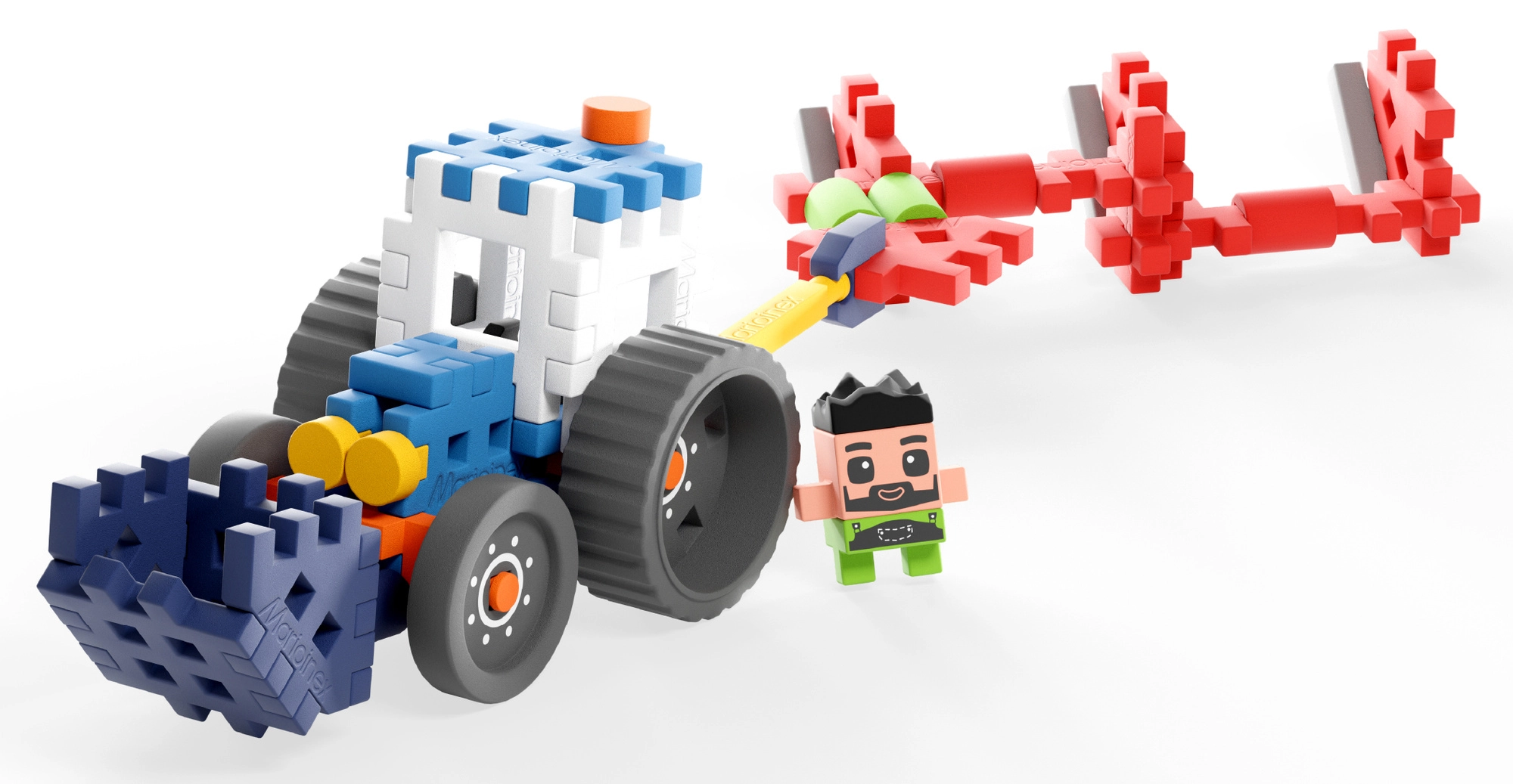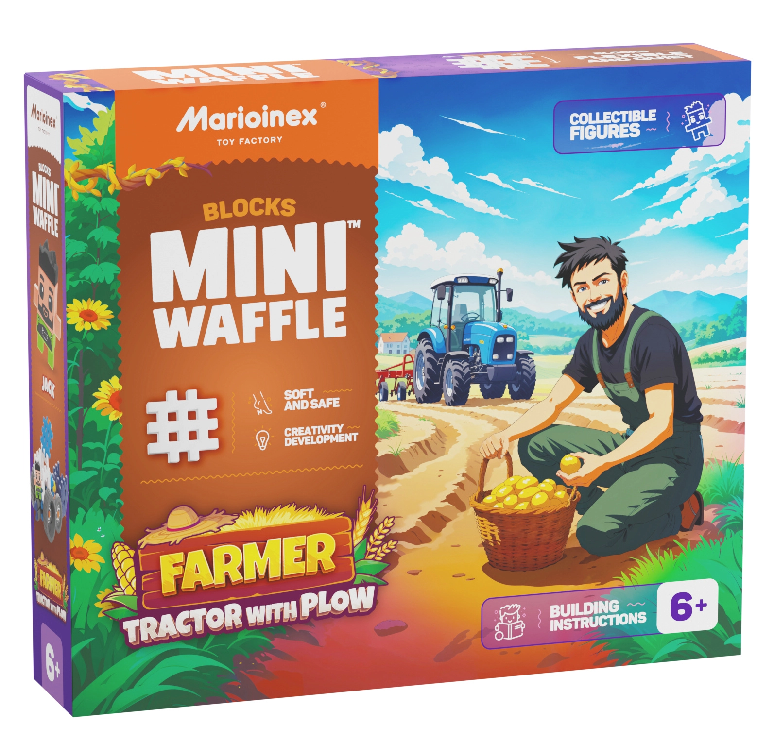 Konstruktorski set MINI WAFFLE FARMER – Traktor s plugom prenosi djecu u svijet svakodnevnog rada na polju. Sastavite realističan model traktora s funkcionalnim nastavkom pluga, uključite maštu i stvarajte vlastite priče iz farmerskog života. Zahvaljujući fleksibilnim dijelovima, građenje je intuitivno i ugodno, a gotov model spreman je za igru.