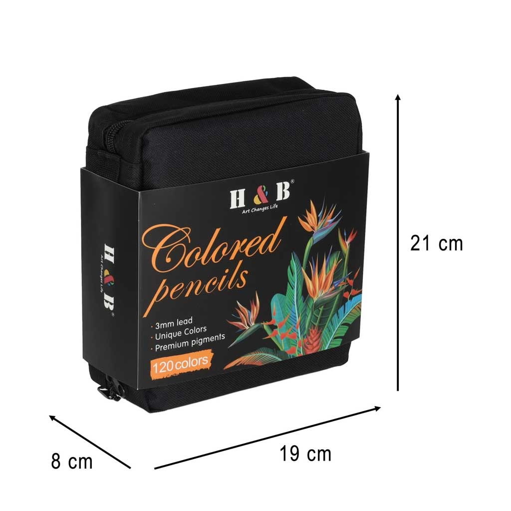 Otkrijte kompletnu kolekciju od 120 obojenih olovaka u praktičnom etuiju s patentnim zatvaračem. Nudi širok izbor nijansi za crtanje, bojenje i skiciranje. U kompletu su gumica i šiljilo, sve pregledno organizirano za lako prenošenje i brz odabir boje.