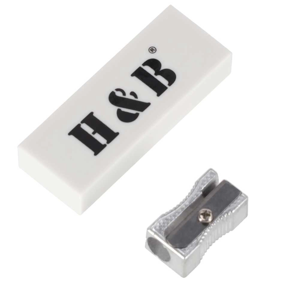 Set uključuje kvalitetnu gumicu i metalno šiljilo, tako da možete crtati, ispravljati i šiljiti bilo kada i bilo gdje.