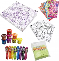 Dio seta su jumbo flomasteri s veselim licima za udoban hvat, netoksična mirisna plastelina u intenzivnim bojama u posudicama za lako spremanje, kao i mirisni kinetički pijesak koji se odlično oblikuje i ne trusi se. Bojanke sa životinjskim motivima proširuju mogućnosti stvaranja i zabavit će djecu na duge trenutke kod kuće i na putu.