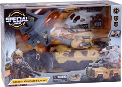 Vojni set za igru donosi sve za akcijske misije: detaljno izrađen tenk s prednjom radlicom, helikopter s kabinom za figuricu i lovački avion s otvarajućim pokrovom. U kompletu je i obrambeno uporište s strojnicom te set pribora za beskrajne scenarije igre.