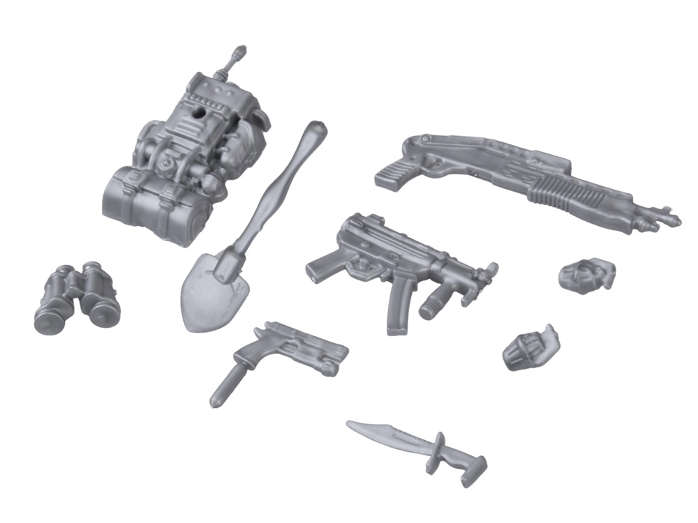 - Tenk s radlicom, helikopter, lovac, figurica vojnika, obrambeno uporište sa strojnicom, taktički ruksak i pribor (oružje, dalekozor, lopatica itd.).
