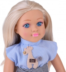 Lutka je odjevena u elegantnu kombinaciju – plavi top s prugama i aplikacijom, šik remen i krem suknja sa zlatnim motivima čine harmoničan outfit upotpunjen crnim balerinkama. Zahvaljujući pokretnim rukama, nogama i glavi lutku je lako posjesti i aranžirati u razne poze za scenske igre i pričanje priča.