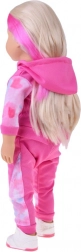 Zglobne ruke i noge omogućuju lutki da stoji, sjedi i pozira, pa je idealna za fotografiranje i svakodnevnu igru. Set uključuje majicu s kapuljačom i jogger hlače s pastelnim tie‑dye uzorkom, koje upotpunjuju udobne tenisice. Odjeća se lako skida kako bi djeca mogla uživati u presvlačenju i razvijati finu motoriku.
