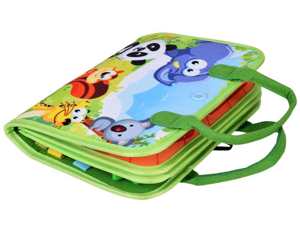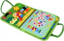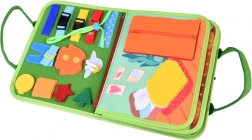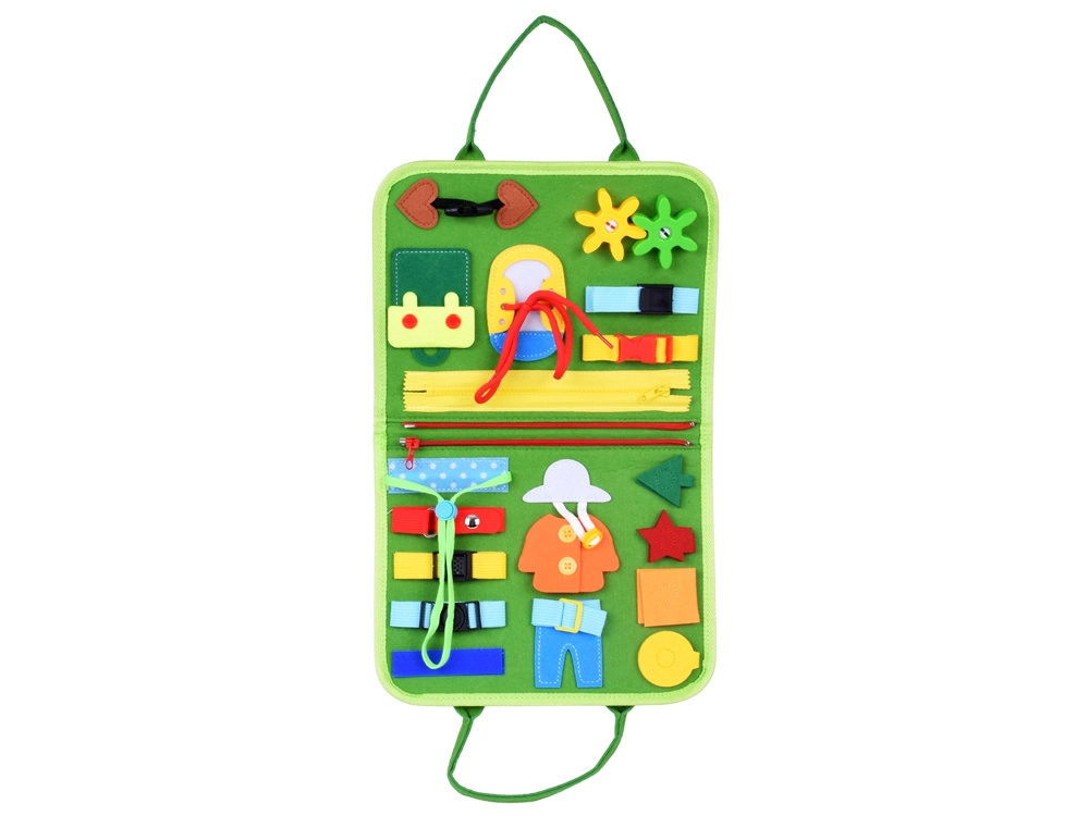 Ova kreativna knjižica razvija dječje vještine kroz smisleno igranje. Unutra ćete naći odvojive mekane stranice s patentnim zatvaračima, kopčama, gumbima, vezicama, oblicima na čičak i edukativnim elementima poput sata s okretnim kazaljkama, dana u tjednu, vremena i kalendara. Djeca vježbaju koordinaciju oko–ruka i logičko razmišljanje.