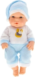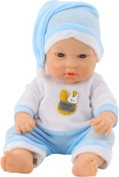Ova šarmantna bebina lutka odjevena je u mekanu plavo-bijelu pidžamicu s kapicom i ukrasnom našivkom. Zahvaljujući ugodnim materijalima i kompaktnoj duljini od 30 cm, lako se drži, nosi i idealna je i za najmlađu djecu.