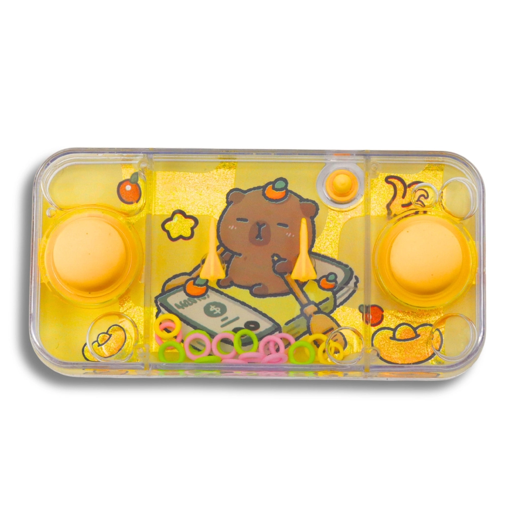 Zabavna vodena igra s motivom kapibara razveselit će djecu jednostavnim pravilima i šarenim dizajnom. Pomoću tipki pokrećete vodu i navlačite prstenove na stošce. Igra ne treba baterije, potiče strpljenje, koncentraciju i finu motoriku te je zbog kompaktnih dimenzija idealna za putovanja. Uzorci su mješavina različitih motiva.