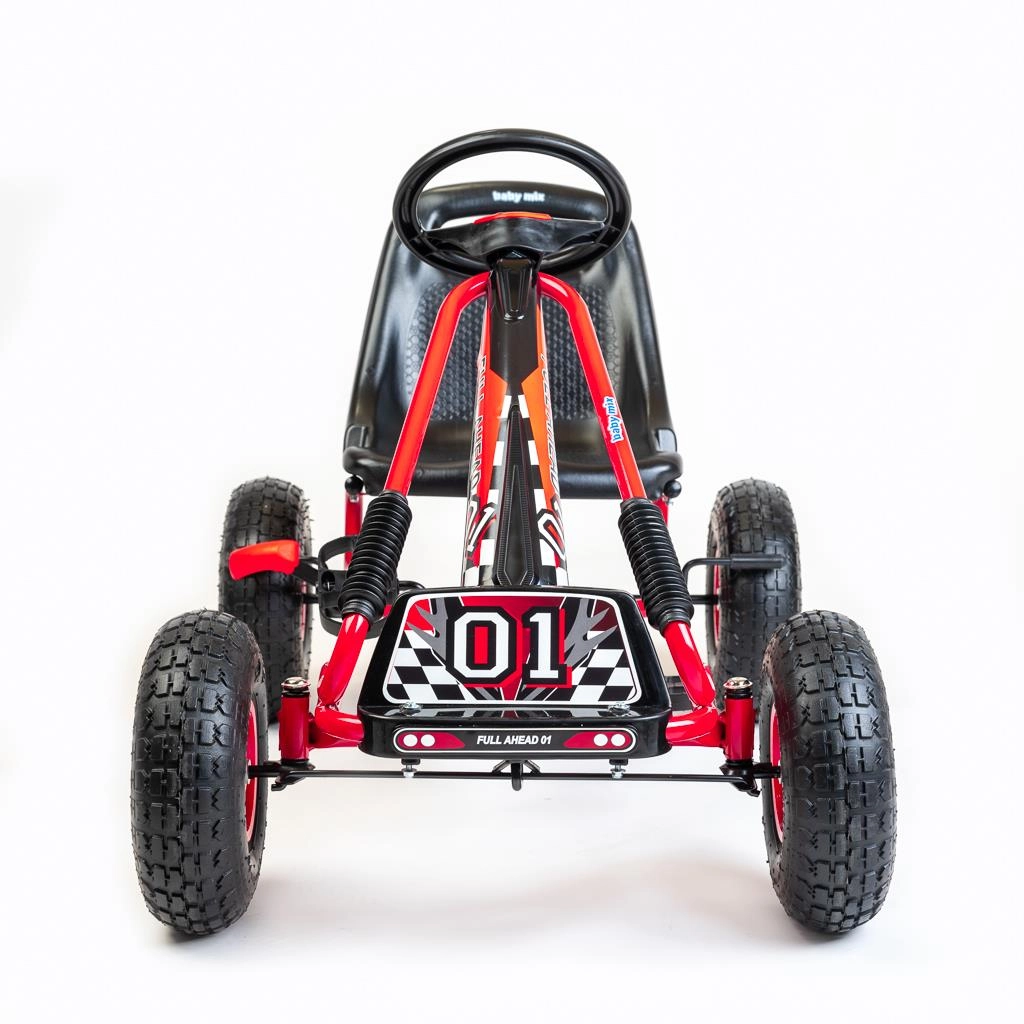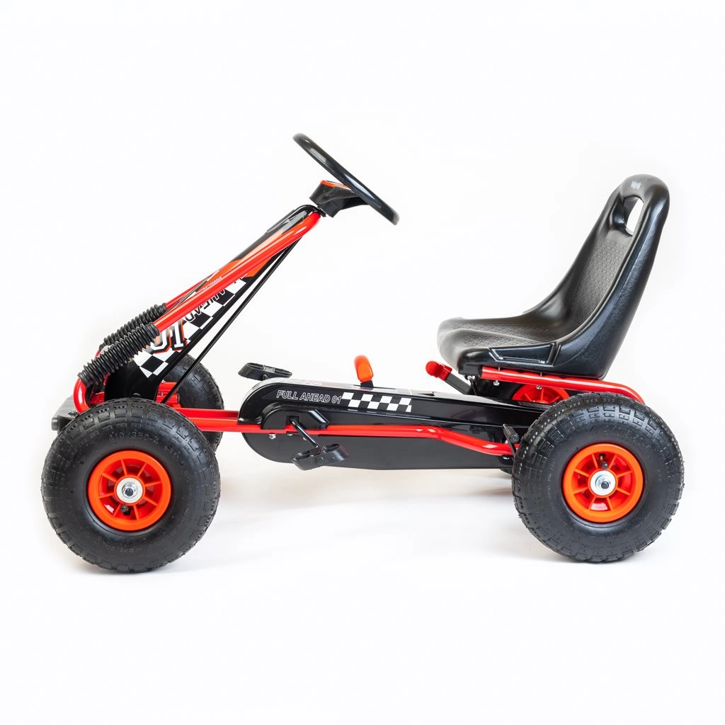 Sigurnost je na prvom mjestu: ručna kočnica djeluje na oba stražnja kotača, lanac je pokriven, a prijenos nudi načine naprijed/natrag i slobodni hod. Karting ispunjava europske sigurnosne norme i zahvaljujući izdržljivoj izradi spreman je za svakodnevne avanture u dvorištu i na igralištu.