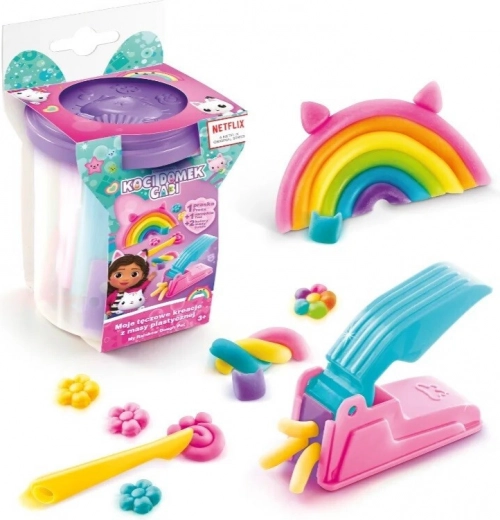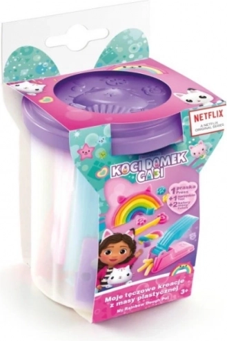 Ovaj kreativni set, inspiriran popularnom Netflix serijom, prenosi djecu u čarobni svijet Gabi i preslatkih mačića. Unutar bijele čašice nalaze se plastelin i tematski dodaci s kojima djeca mogu stvarati dugine kreacije i vlastite priče iz Mačjeg doma.