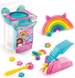 Ovaj kreativni set, inspiriran popularnom Netflix serijom, prenosi djecu u čarobni svijet Gabi i preslatkih mačića. Unutar bijele čašice nalaze se plastelin i tematski dodaci s kojima djeca mogu stvarati dugine kreacije i vlastite priče iz Mačjeg doma.