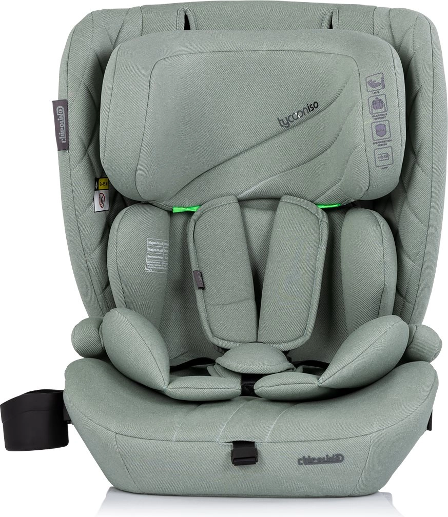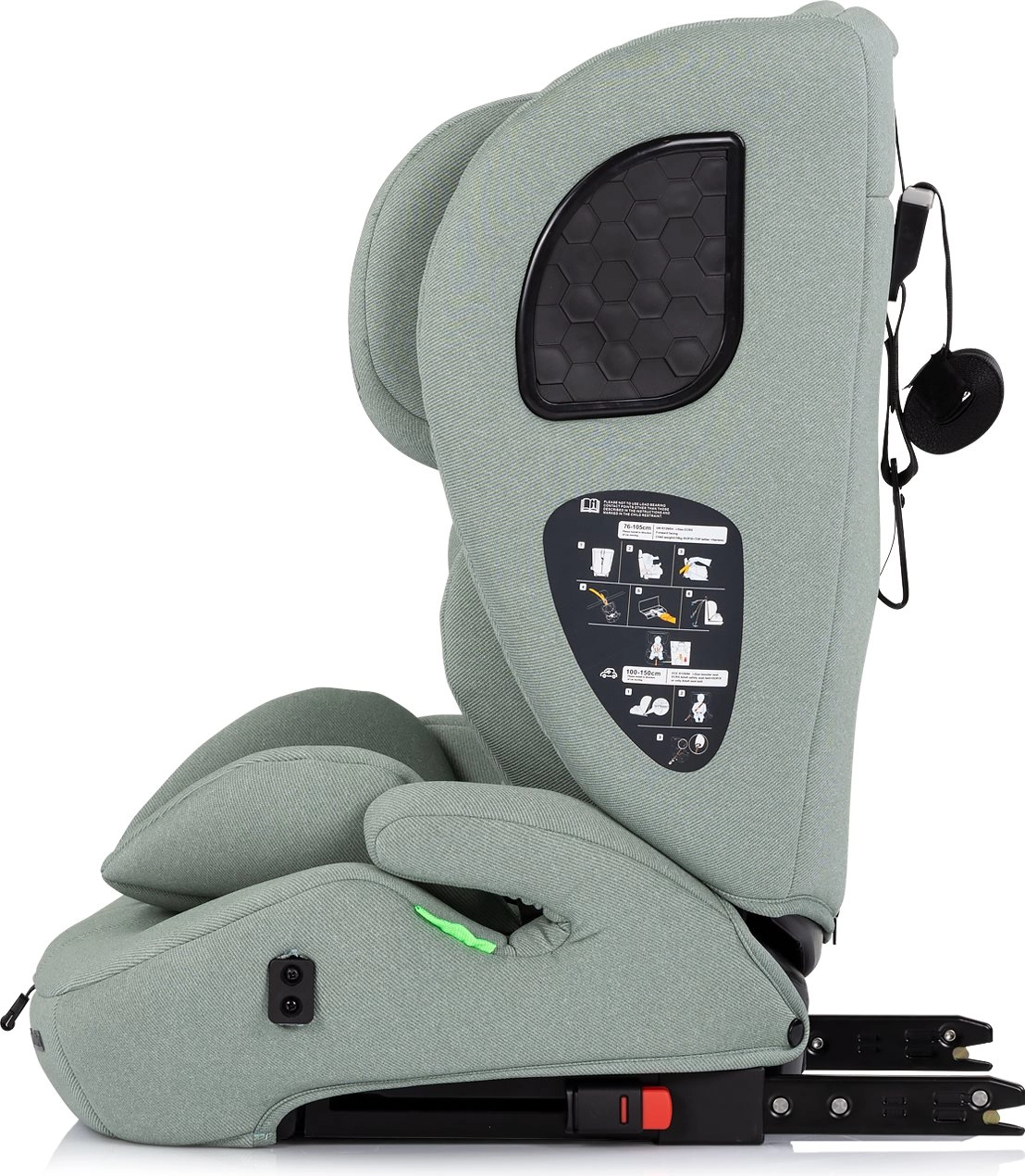 CHIPOLINO Tycoon i-Size raste s djetetom otprilike od 15 mjeseci do 12 godina (76–150 cm). Zahvaljujući sustavu ISOFIX i gornjoj vezici Top Tether ugradnja je brza i stabilna. Za sigurnost se brine SPS bočna zaštita i usklađenost sa strogom normom ECE R129 i-Size, koja testira frontalne, stražnje i bočne udare.
