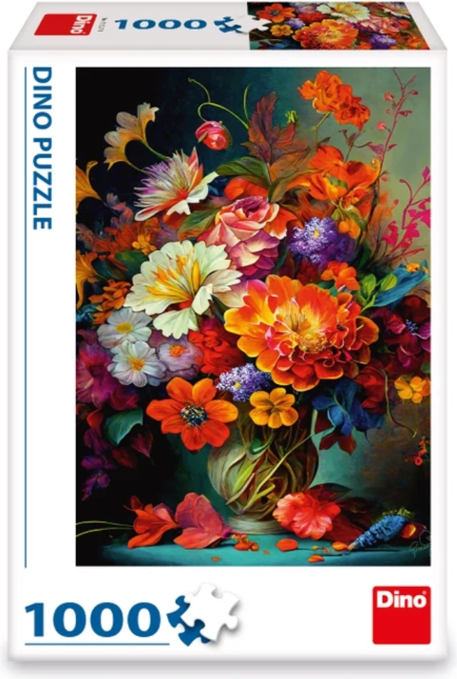 Uživajte u opuštanju uz slaganje puzzle od 1000 dijelova s motivom cvijeća u vazi brenda DINO. Visok kontrast boja, kvalitetan tisak i čvrsta kartonska kutija jamče ugodno iskustvo i dugu trajnost.