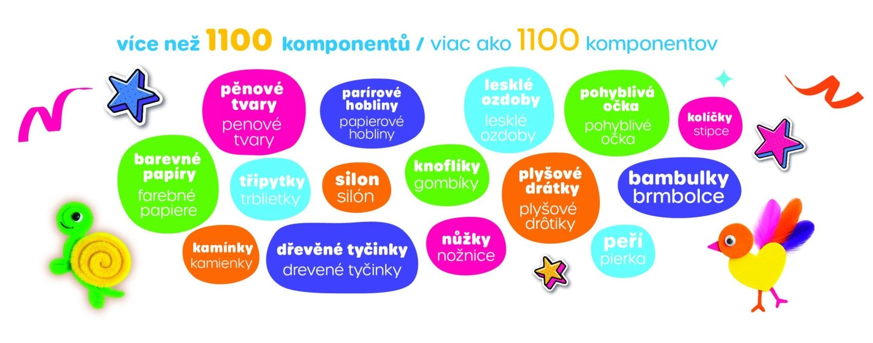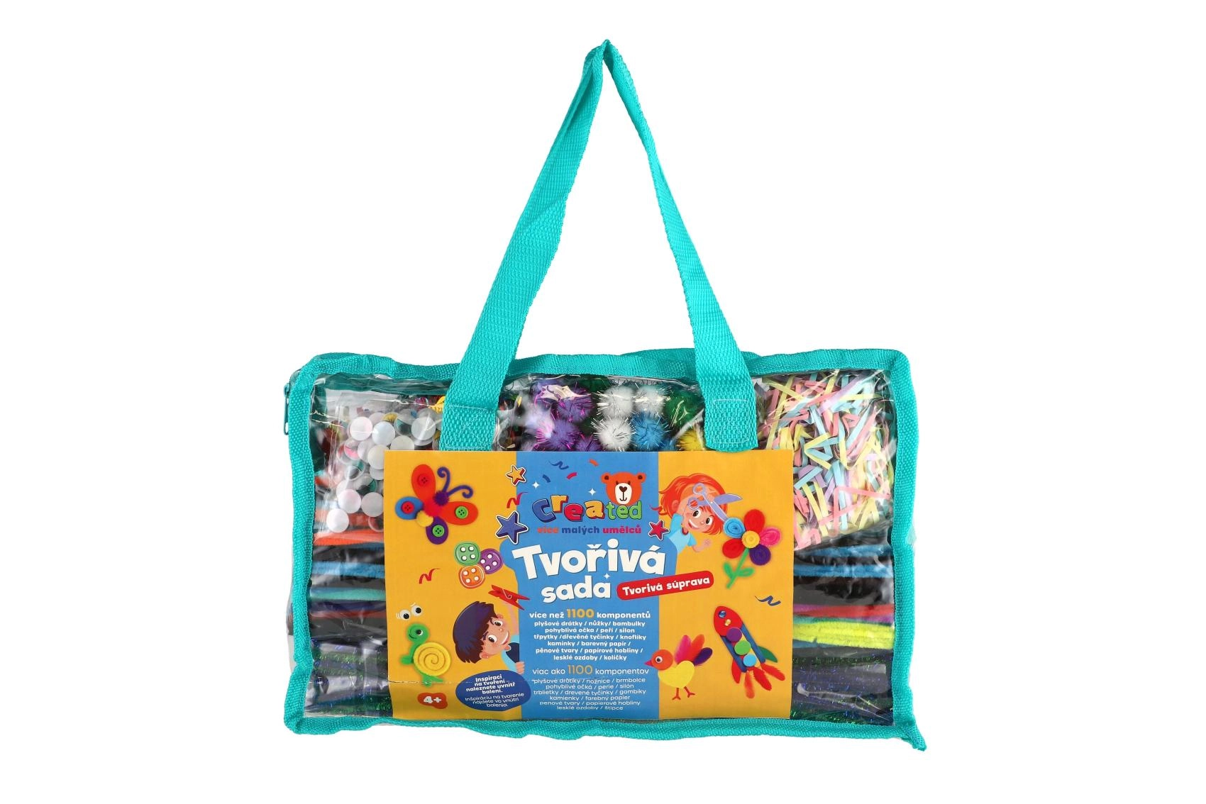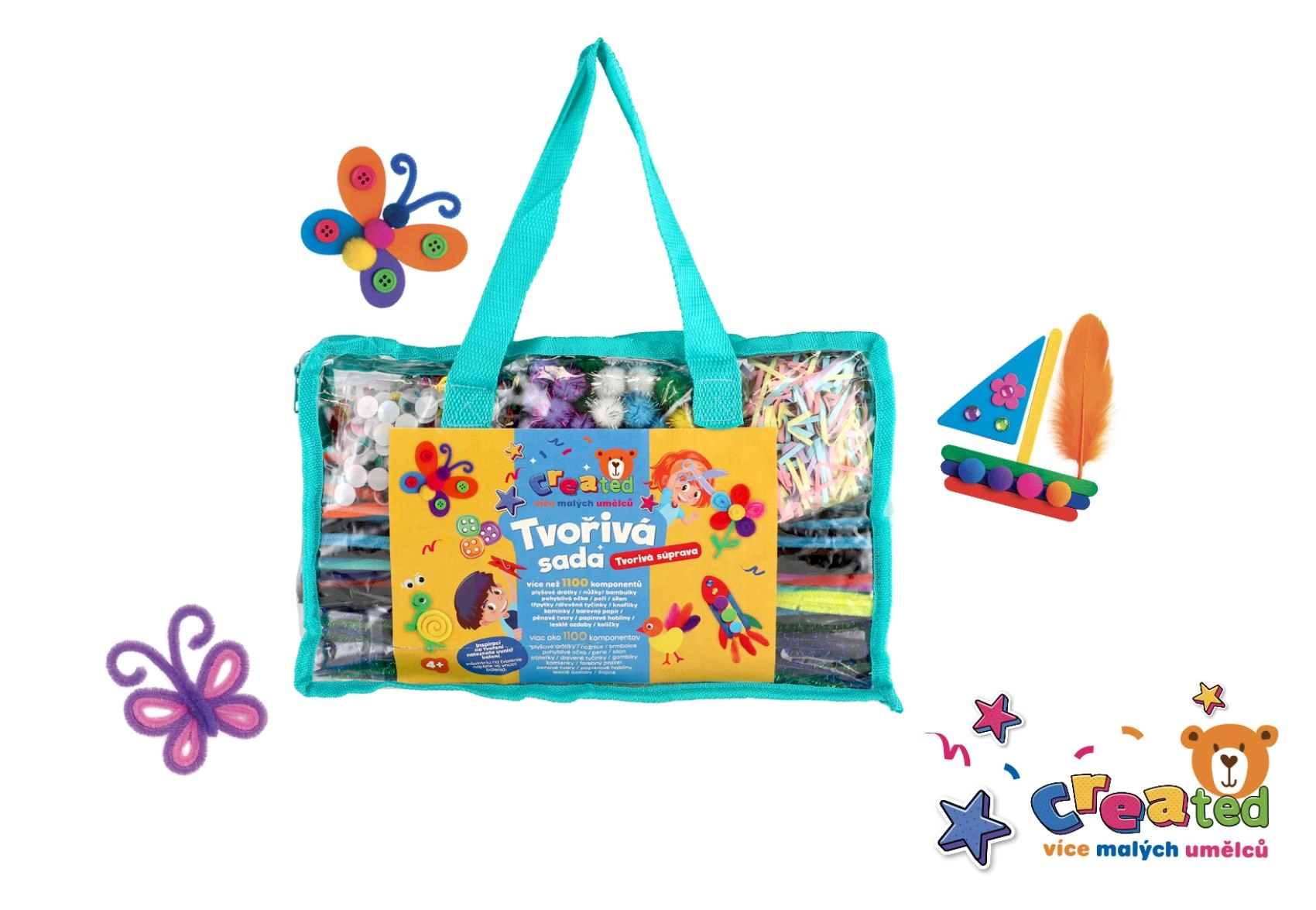 Perlice, pomponi, čupave žice, pjenasti oblici i pera omogućuju djeci stvaranje sličica, likova, životinjica i ukrasa točno prema njihovim zamislima.
