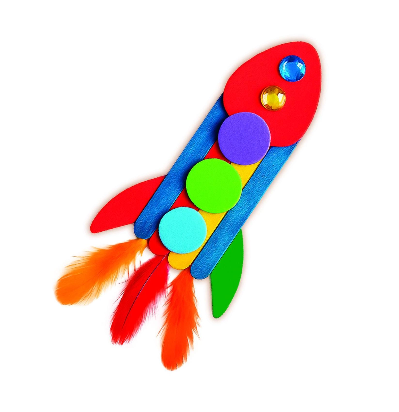 Djeca mogu izraditi vlastitu raketu i druge tematske kreacije. Kombinacija oblika i ukrasa potiče kreativnu igru i stvaranje korak po korak.