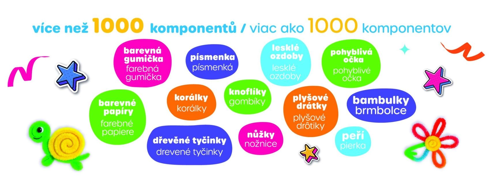 Ovaj bogati set potiče dječju maštu, finu motoriku i kreativnost. Zahvaljujući raznolikim materijalima, djeca će izraditi vlastite ukrase, životinjice, cvijeće i sitne dekoracije – kod kuće, u vrtiću ili na putu. Praktična kutija drži sve dijelove na okupu i ubrzava pospremanje.