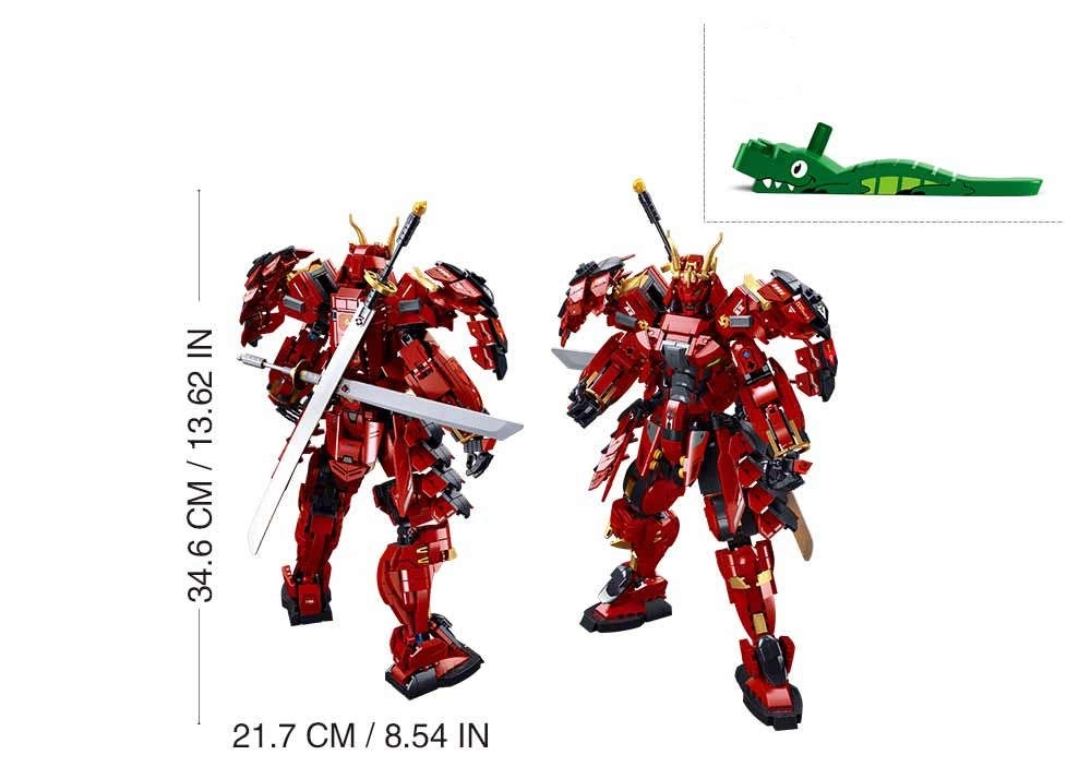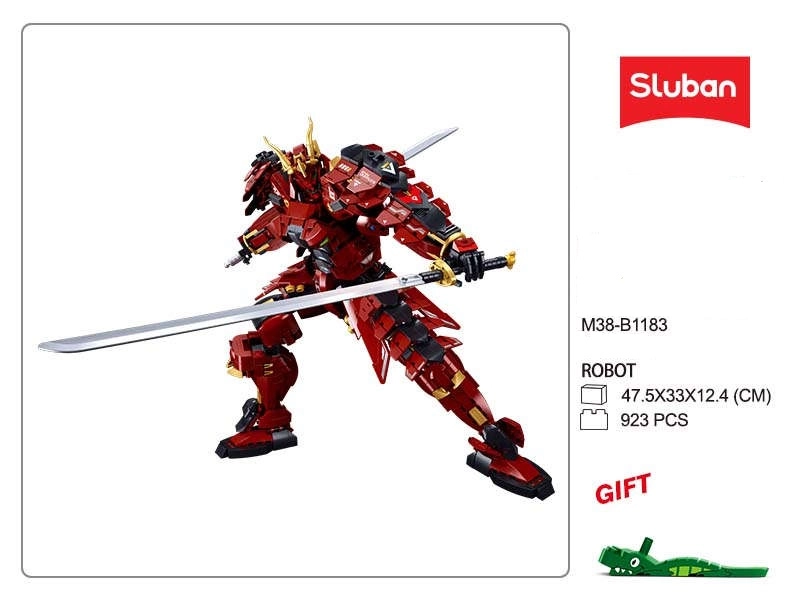 Uđi u svijet akcijskih dvoboja sa setom za slaganje Sluban Robot samuraj. Ovaj impresivan crveni mecha ratnik ima pokretne ruke, noge i glavu, nosi detaljno izrađen oklop sa zlatnim dodacima i naoružan je s dva katana mača. Set od kvalitetne ABS plastike nudi 923 dijela, sjajno iskustvo slaganja i kompatibilan je s LEGO i drugim markama.