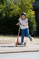 Univerzalni koloritet s grafikom Munjevitog privlači i dječake i djevojčice. Tihi, protuklizni kotači omogućuju uglađenu vožnju po pločniku i stabilnost. Romobil je idealan za svakodnevnu zabavu na otvorenom i razvoj motorike.