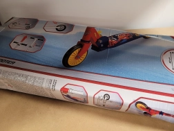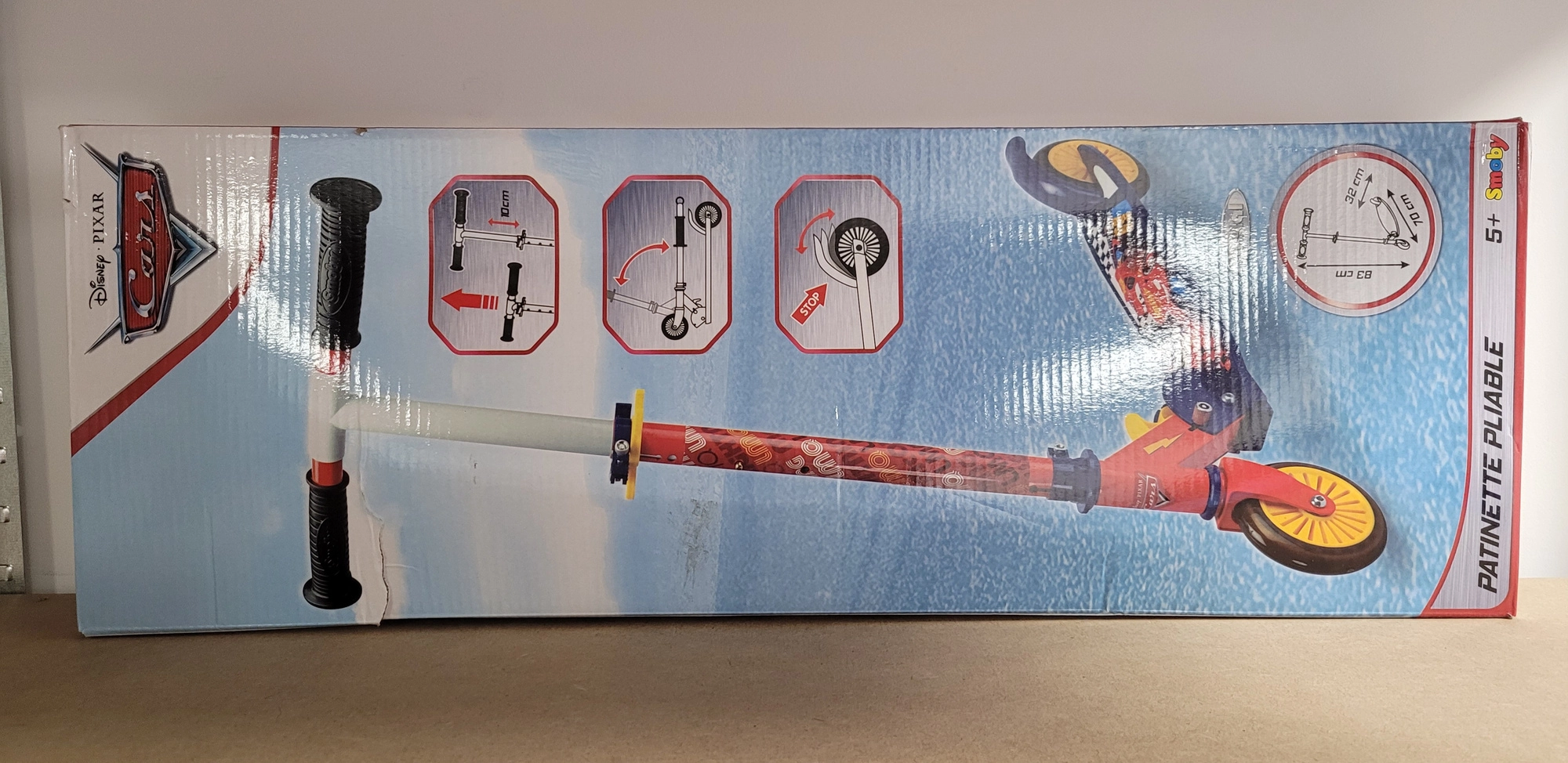 Lagan i izdržljiv dječinski romobil s motivom Auta CARS – Munjeviti Jurić razveselit će svakog malog vozača. Ima aluminijsku konstrukciju, podesiv upravljač (73–83 cm), protukliznu široku podnicu, tihe kotače i nožnu kočnicu. Maksimalno opterećenje 50 kg, idealno od 5 godina. Upozorenje: oštećena ambalaža, manje ogrebotine/okrhnutja.