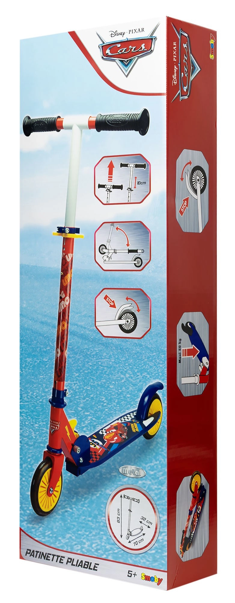 Stilský romobil s omiljenim junakom Munjevitim Jurićem iz crtića Auta CARS donosi puno zabave i pomaže razvoju ravnoteže. Zahvaljujući lakom aluminijskom okviru i sklopivoj konstrukciji, lako se prenosi i sprema. Podesiva visina upravljača osigurava udobno prilagođavanje djetetovoj građi, dok protuklizna površina i nožna kočnica brinu o sigurnoj vožnji.