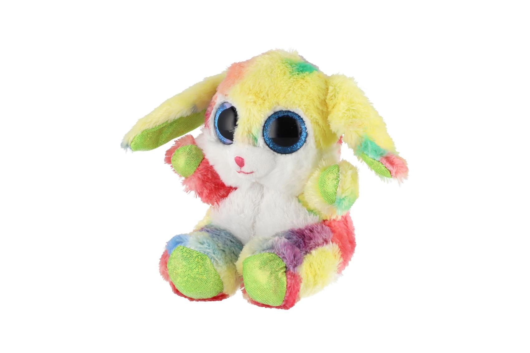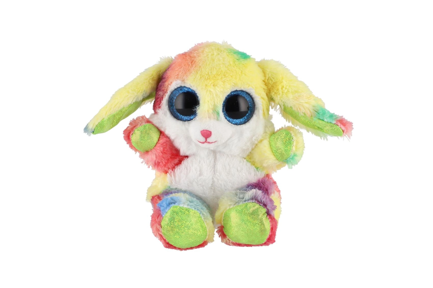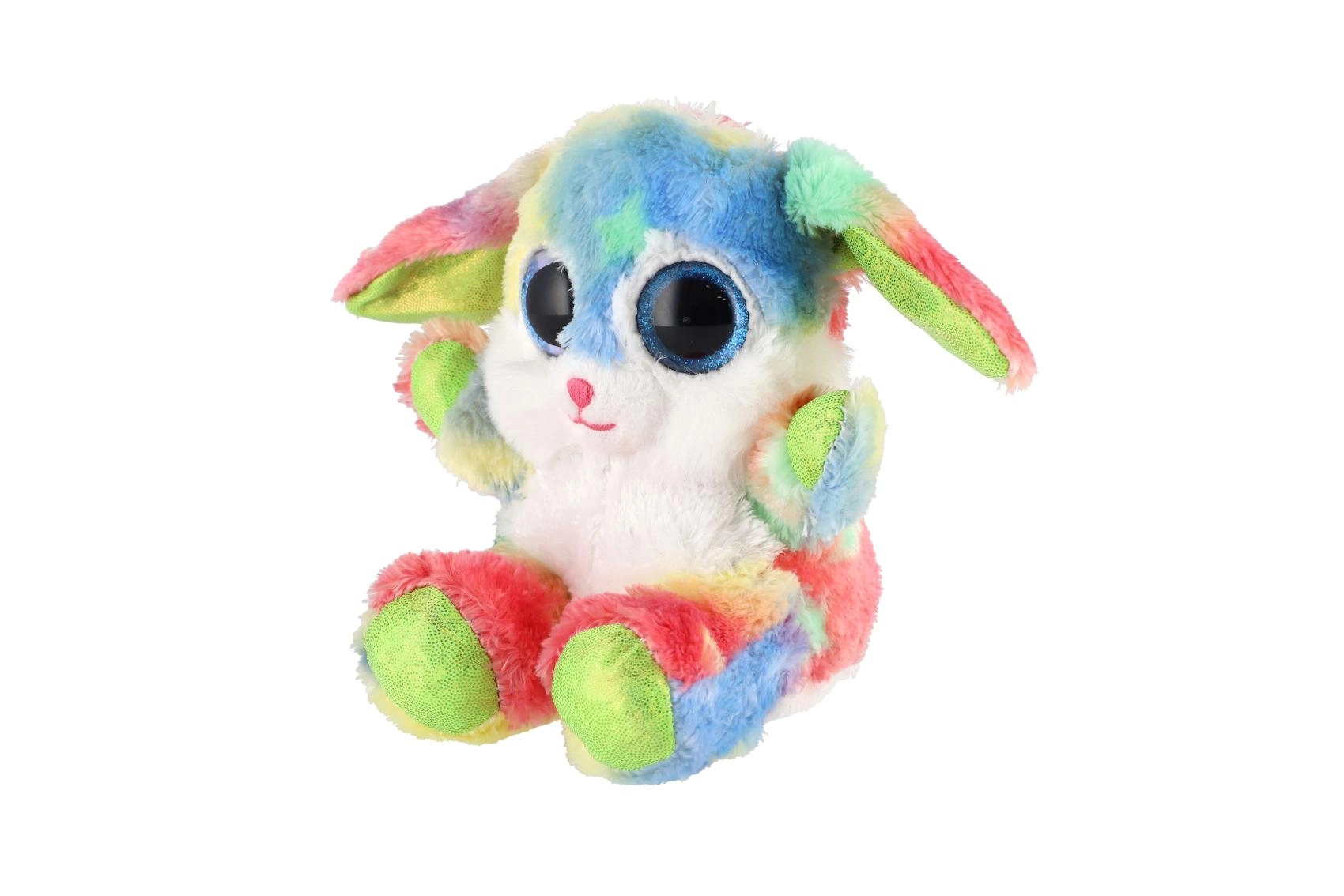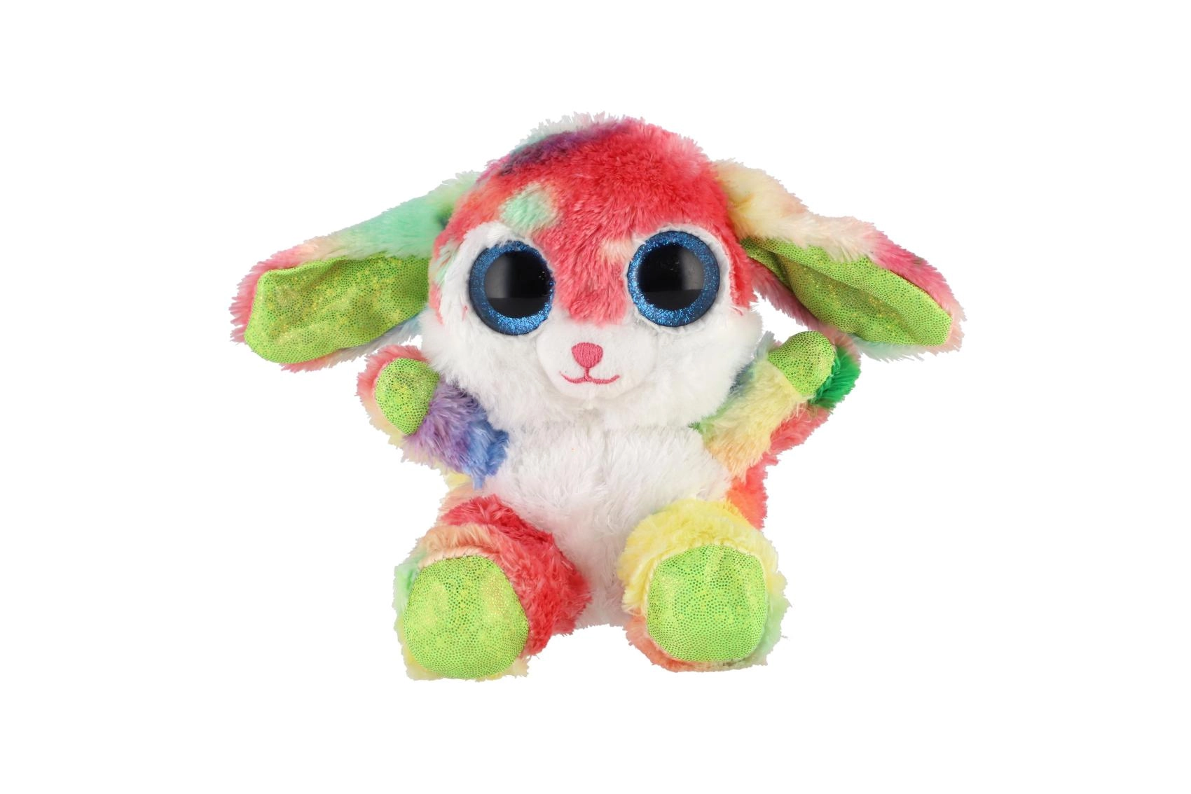 Ovaj šareni plišani zečić osvojit će srca i djece i odraslih. Mekan, na dodir ugodan materijal jednostavno poziva na maženje, dok izražajne plave, sjajne oči i dugina krzna daju igrački razigran i čaroban izgled. Zahvaljujući sjedećem položaju odlično pristaje i kao dekoracija dječje sobe.