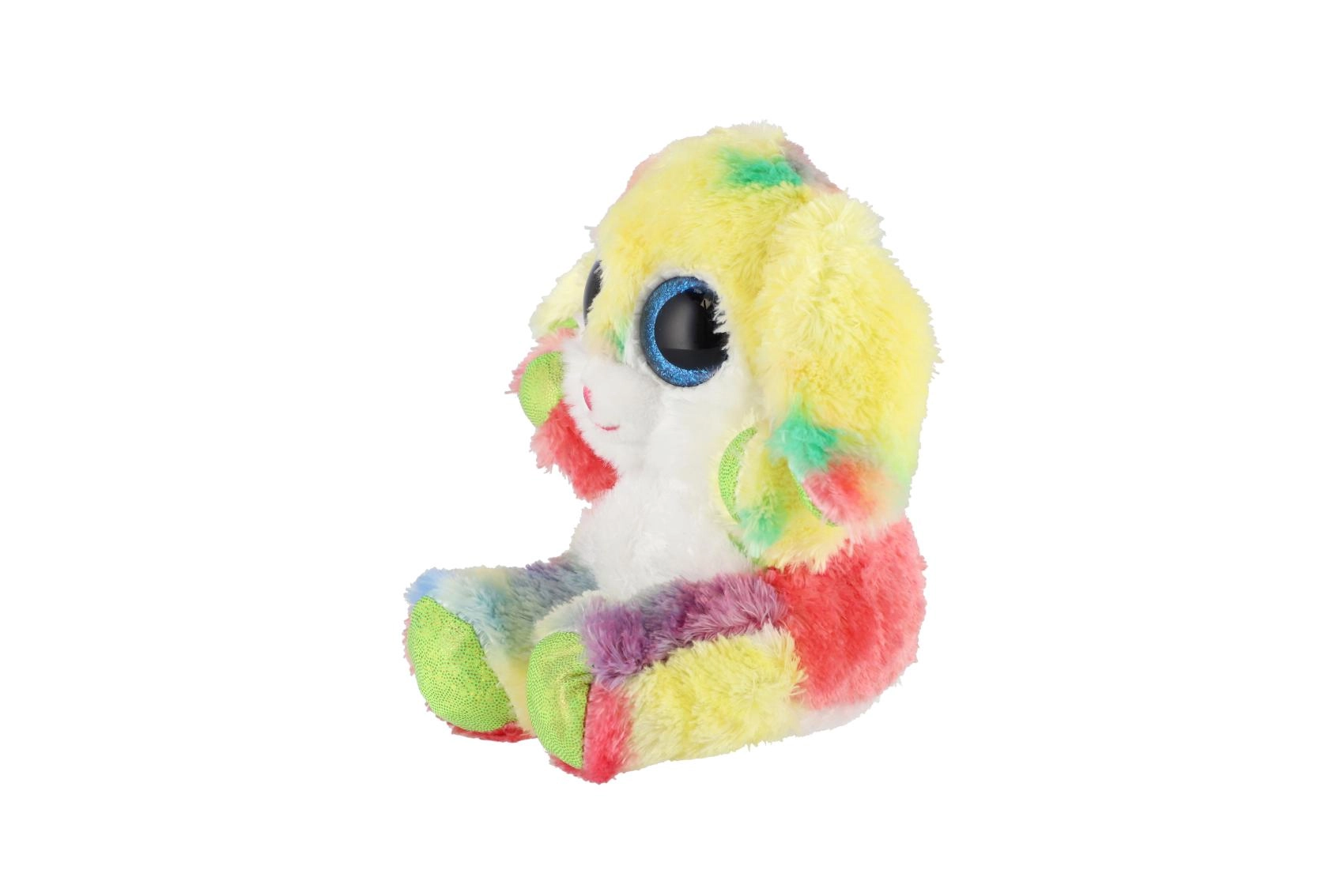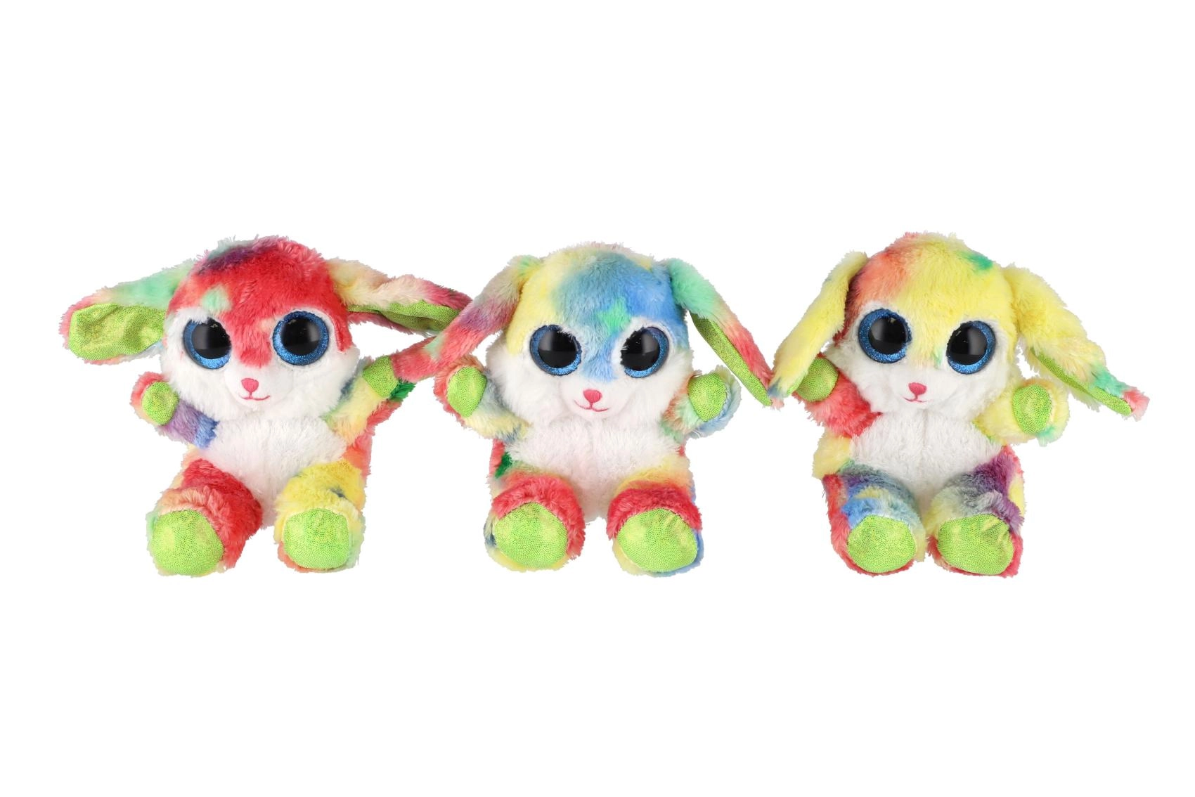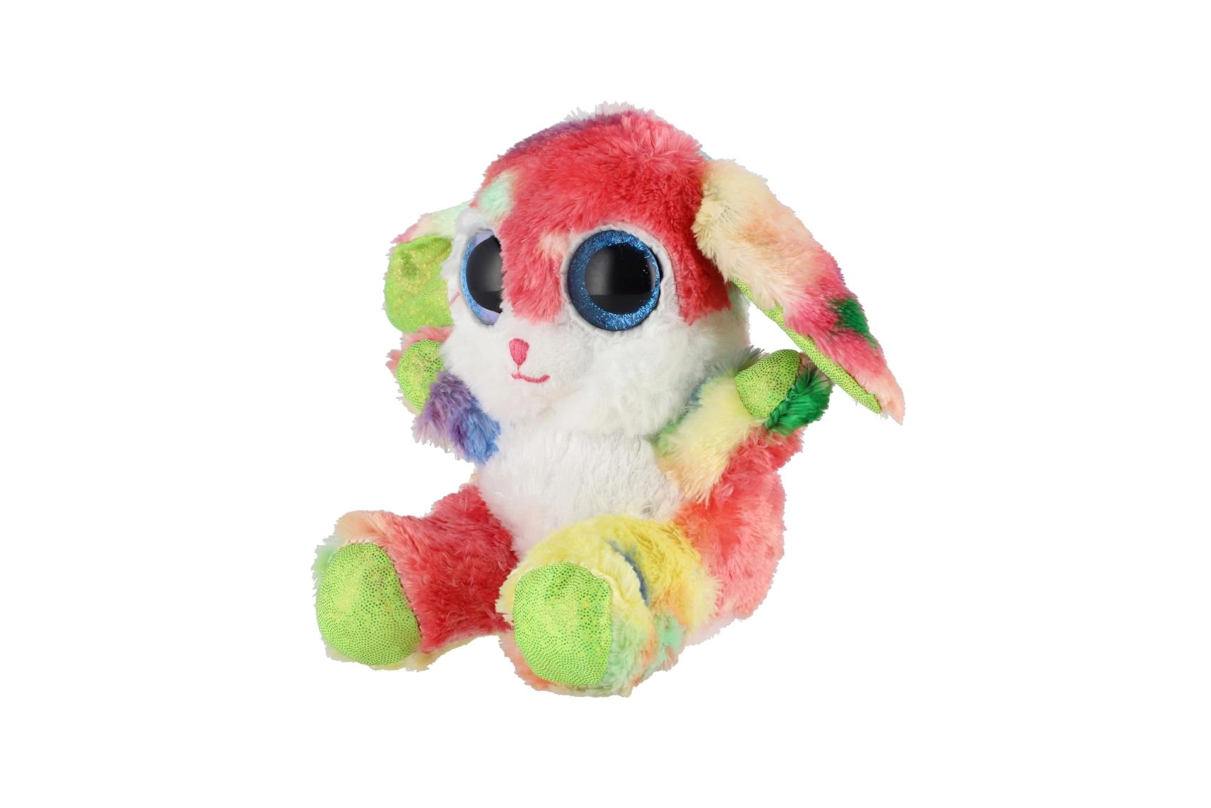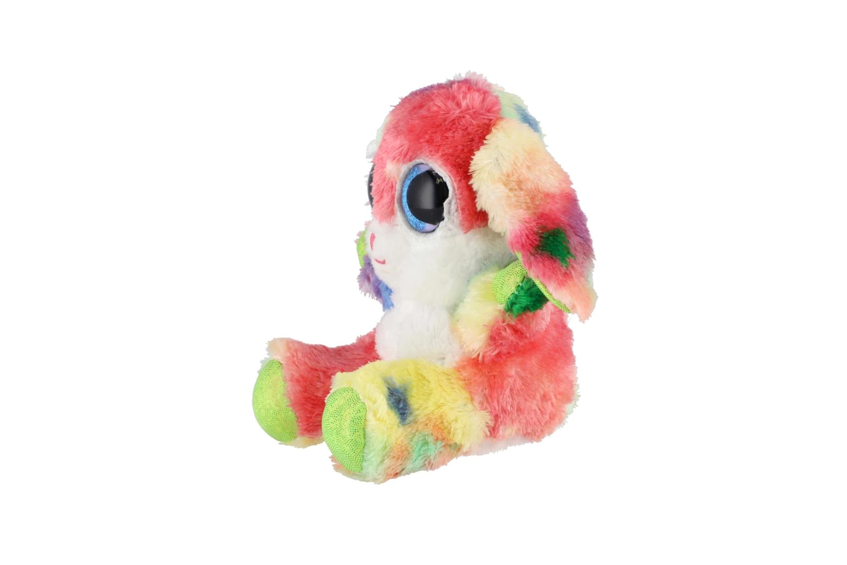 Ovaj šareni plišani zečić osvojit će srca i djece i odraslih. Mekan, na dodir ugodan materijal jednostavno poziva na maženje, dok izražajne plave, sjajne oči i dugina krzna daju igrački razigran i čaroban izgled. Zahvaljujući sjedećem položaju odlično pristaje i kao dekoracija dječje sobe.