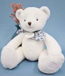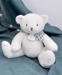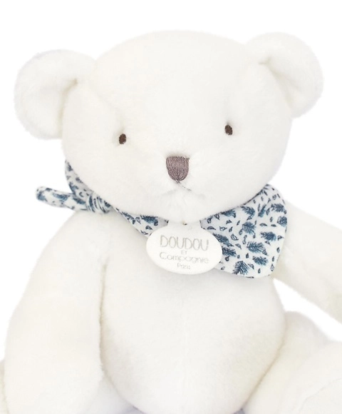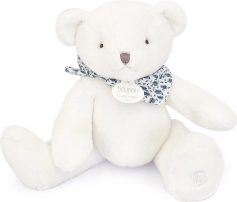 Preslatki bijeli plišani medo s plavim maramom brenda DOUDOU idealan je prvi prijatelj za bebe. Izrađen je od mekanog, vrhunskog materijala, ima sigurne izvezene detalje i prikladan je od rođenja. Savršen je za umirivanje, maženje i mirno uspavljivanje, a zahvaljujući nježnim bojama uklopit će se u svaku dječju opremu.