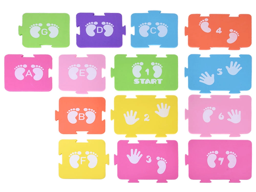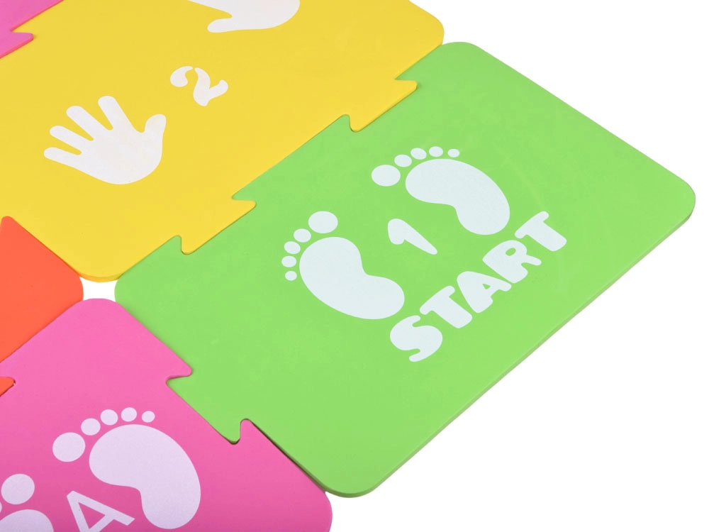 Ova akcijska igra odlična je za veće skupine i obiteljska poslijepodneva. Cilj je izvršavati izazove prema motoričkom obrascu – postavljati ruke i noge na određena polja i napredovati bez dodirivanja drugih površina. Zahvaljujući mekanoj, protukliznoj podlozi djeca su sigurna, a istovremeno uče boje, slova i brojke.