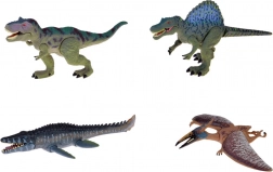 U pakiranju se nalaze četiri različite vrste: pterodaktil (leti i pomiče glavu te stražnje udove), T-rex (prijeteće klapa čeljustima i miče prednjim i stražnjim udovima), spinosaurus (pomiče čeljust, udove i rep) i kronosaurus (otvara ralje i pomiče peraje). Svaka figurica izrađena je od kvalitetne, izdržljive plastike koja podnosi često igranje.