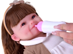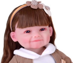 Lutka oduševljava razrađenim crtama, velikim smeđim očima s gustim trepavicama i osmijehom s jamicama u obrazima – djeluje prirodno i nježno.