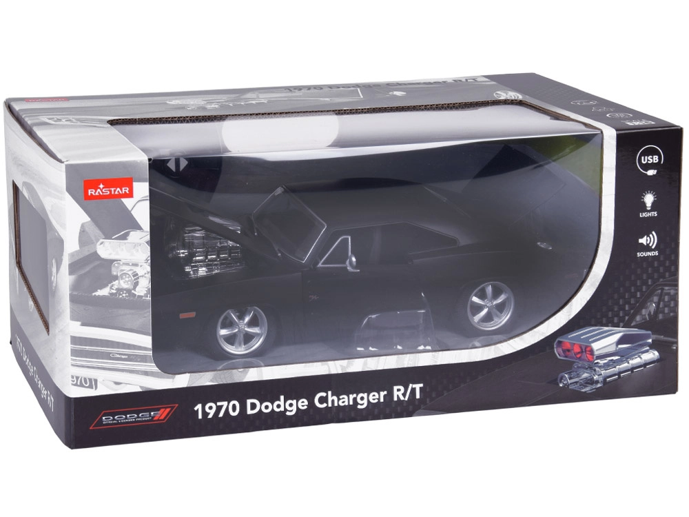 Ikona cesta 70-ih sada u vašoj ruci. Ovaj daljinski upravljani model vjerno zadržava karakteristične linije originala CHARGER R/T te dodaje dojmljivo narančasto i crveno osvjetljenje i zvukove motora i škripu guma, koji pojačavaju doživljaj vožnje. Zahvaljujući otvarajućim elementima zavirit ćete u detaljno izrađenu unutrašnjost i pod poklopac motora.